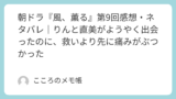 ここ2週間は、正直かなり苦しかった。りんも直美も、ただただ追い詰められている印象が強かった。でも今回は、その苦しさの先に少しだけ新しい扉が見えてきた気がする。りんは卯三郎と出会い、直美とは本気でぶつかった。どちらも痛みのある出会いだったが、それでもこれまでとは違う何かが始まりそうな気配がある。