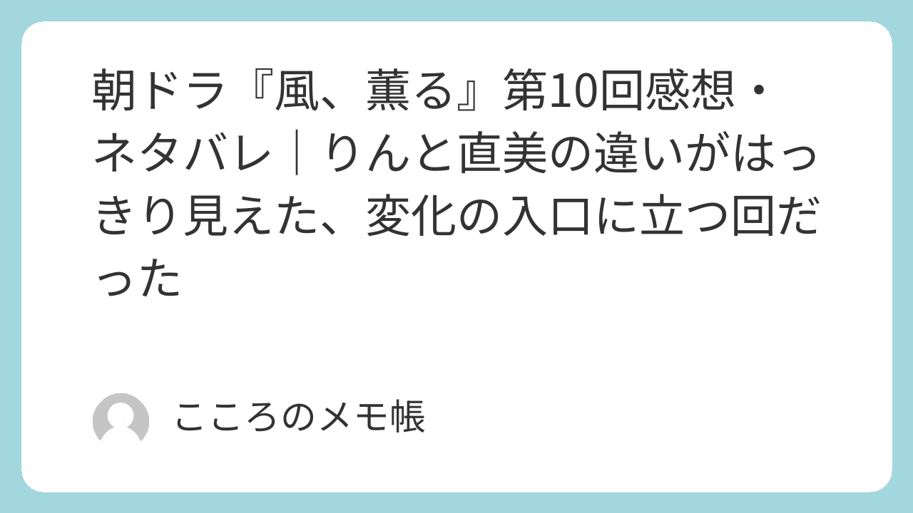 2026年4月10日放送の『風、薫る』第10回は、りんと直美の違いがはっきりと見えた回だった。りんはまだ危うく、直美の方が人の痛みをよく分かっているように見える。一方で、りんは卯三郎との出会いを通じて、自分がこれまで言葉にできなかった願いを少しずつ口にし始めていた。