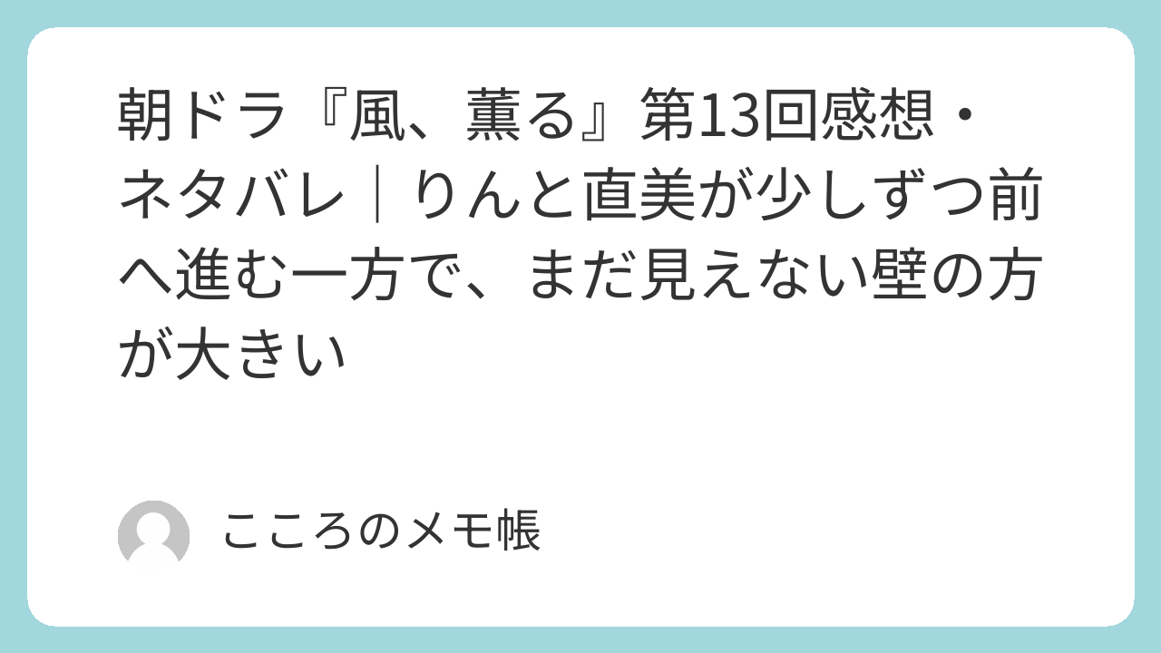 まだ物語として一気に面白く跳ねた感じまではないけれど、次に大きく動くための準備はかなり整ってきた印象がある。第13回は、りんと直美がそれぞれの場所で、少しずつ次の段階へ入っていく回だったように思う。