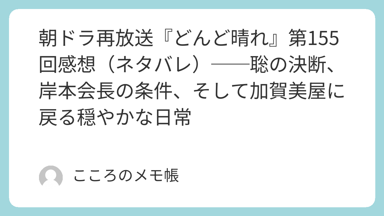 今回の第155回でまず大きかったのは、東京での岸本会長との対話が、単なる企業交渉ではなく、価値観そのもののぶつかり合いとして描かれたことだと思う。岸本会長は最後まで「世の中は勝つか負けるか」という論理の側に立っている。でも夏美は、勝ち負けだけが大事なのではなく、おもてなしの心があると言う。その言葉だけでは、正直、岸本会長のような人間には届きにくかっただろう。だからこそ、実際に加賀美屋で世話になった岸本様が入ってきて、「同じ日本人としてこの心が分からない人はいない」と言い切る流れはかなり強かった。かなり分かりやすいし、かなり熱い展開だったと思う。