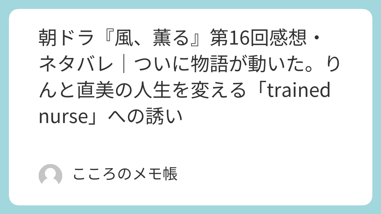 2026年4月20日放送の『風、薫る』第16回は、ようやくこの物語が本格的に「トレインドナース」へ向かって動き出した回だった。ここまで長く、りん(見上愛)と直美(上坂樹里)がそれぞれ別の場所で苦しみ、迷い、寄り道しながら進んできたけれど、今回ついにその経験が一本の線につながったように感じる。