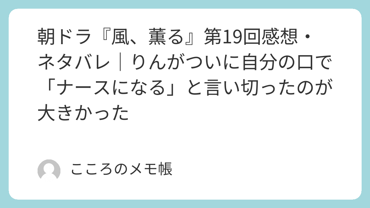 2026年4月23日放送の『風、薫る』第19回は、りんが亀吉と正面からぶつかり、ついに自分の口で「ナースになる」と宣言した回だった。環を守るため、自分の生き方を守るために、ようやくりんが主体的に立ち上がったのが大きかった。