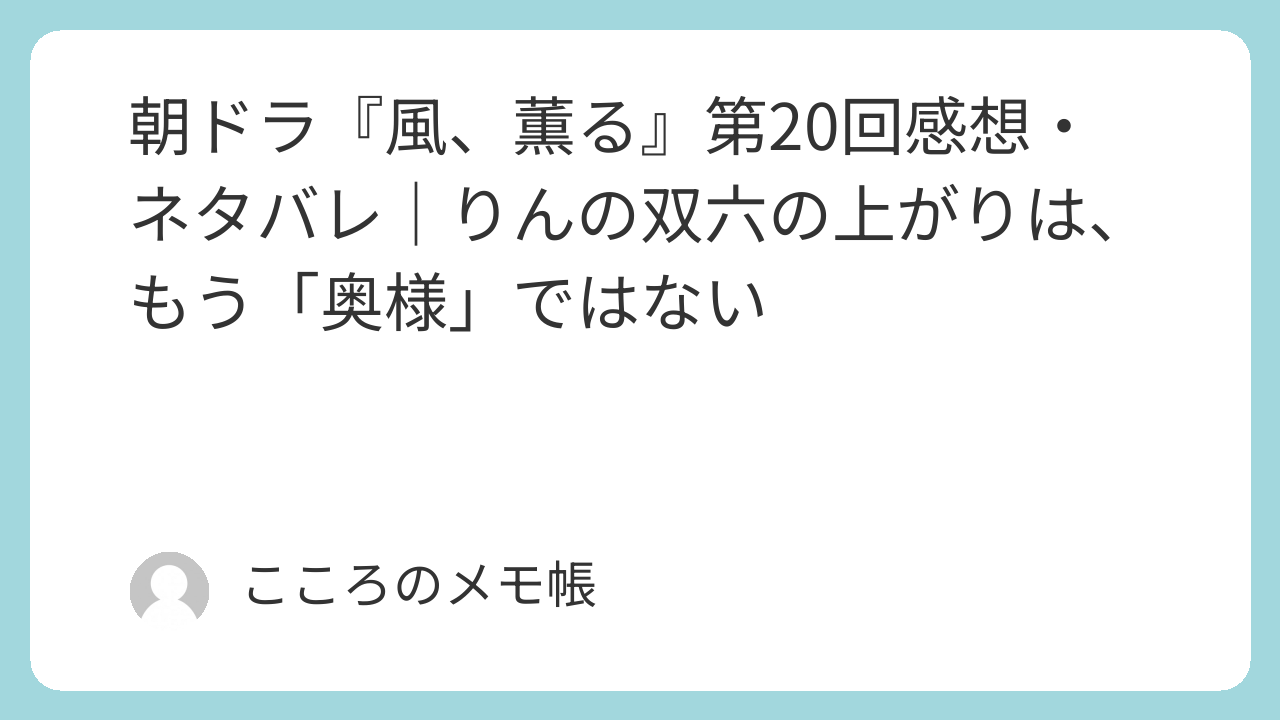 2026年4月24日放送の『風、薫る』第20回は、りんが自分の人生の上がりを「奥様」ではなく、自分の力で生きる道に置き直した回だった。環のためでもあり、自分のためでもある。その両方をようやく自分の言葉で言えたのが大きかった。