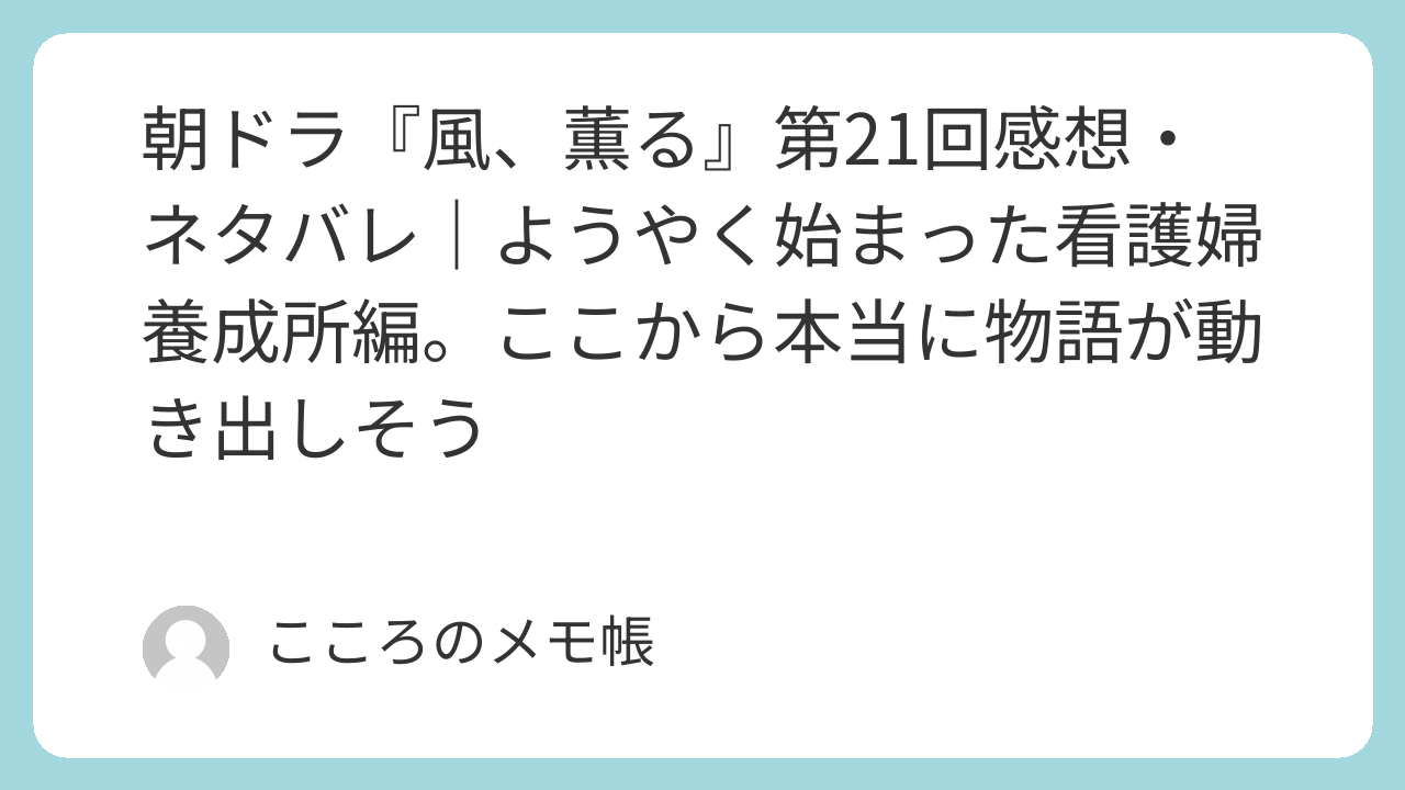 ここまでの『風、薫る』は、正直かなり助走が長かったし、重い話も多かった。でも今回は、一期生たちがそろって、寮生活が始まり、これから看護を学ぶのだという土台がようやく整った。だからこそ、ここから先は「どう成長していくか」を見ていけそうな期待がある。