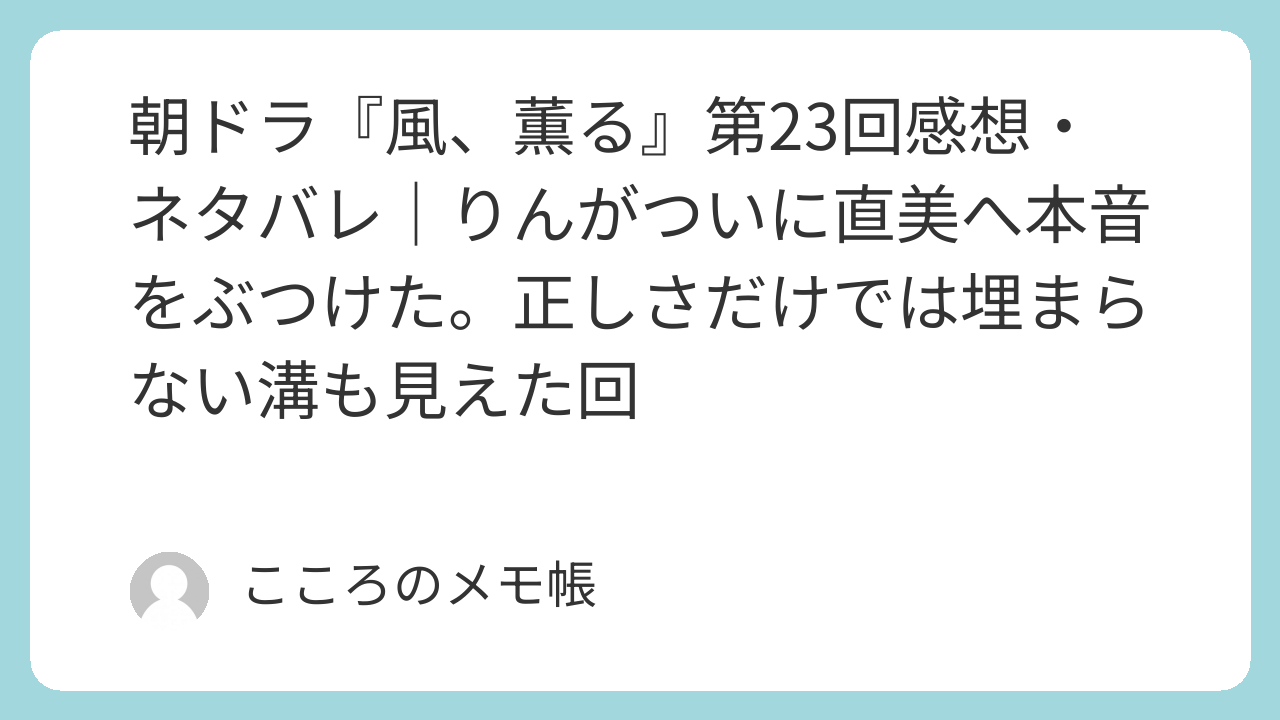 2026年4月29日放送の『風、薫る』第23回は、看護婦養成所の中で、りんと直美がついに真正面からぶつかった回だった。りんの言葉は正しく、でも優しくはなかった。直美の態度はめんどくさく、でもその背景には深い傷がある。その複雑さがかなりよく出ていたと思う。