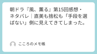2026年4月17日放送の『風、薫る』第15回は、直美(上坂樹里)と捨松(多部未華子)がそれぞれ自分の目的のために現実的な手段を選び取っていく一方で、りん(見上愛)の側でも美津(水野美紀)が相変わらず美津らしく場を仕切り始める回だった。物語...