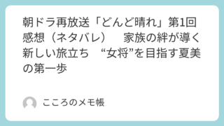 朝ドラ 朝ドラ再放送「どんど晴れ」第1回感想(ネタバレ) 家族の絆が導く新しい旅立ち “女将”を目指す夏美の第一歩 2025年10月13日に放送された連続テレビ小説『どんど晴れ』の第1回「わたし女将(おかみ)になります」。現代の若い女性が“おもてなし”の心と向き合いながら成長していく物語が、ついに始まりました。今回は、主人公・朝倉夏美(比嘉愛未)が見せた... 2025.10.16 朝ドラ