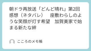 朝ドラ 朝ドラ再放送「どんど晴れ」第2回感想(ネタバレ) 座敷わらしのような笑顔が灯す希望 加賀美家で始まる新たな絆 2025年10月14日に放送された『どんど晴れ』第2回。盛岡の老舗旅館・加賀美屋を舞台に、朝倉夏美(比嘉愛未)が初めて柾樹(内田朝陽)の家族と対面する回でした。この第2回では、華やかな宴の中に描かれる「伝統ある家族の重み」と、その中で光る夏... 2025.10.16 朝ドラ